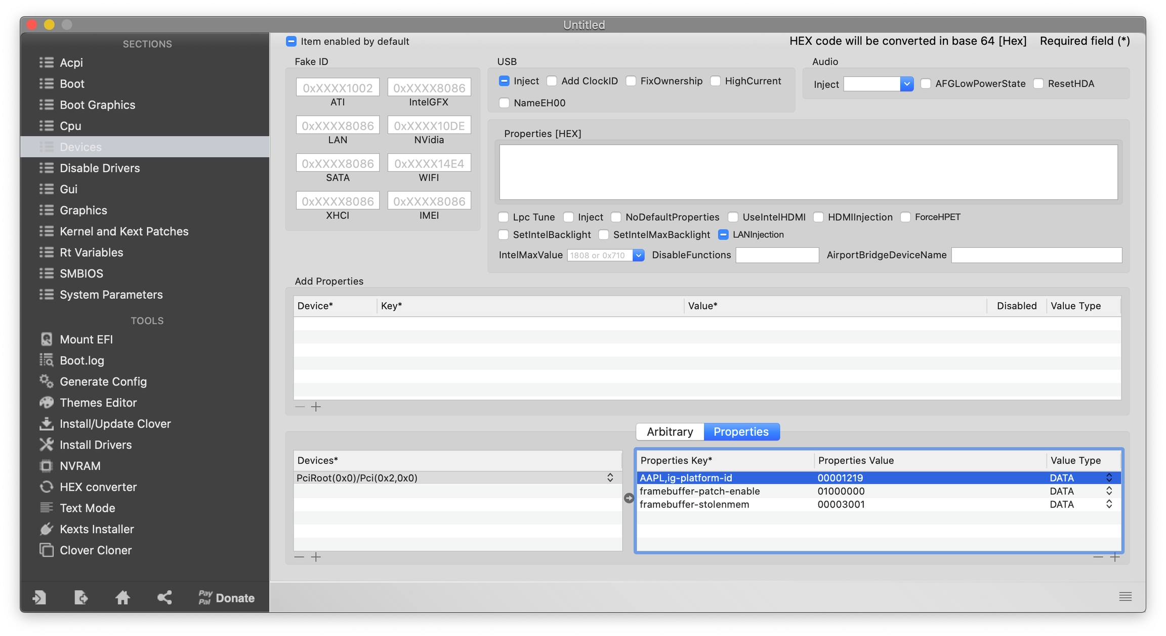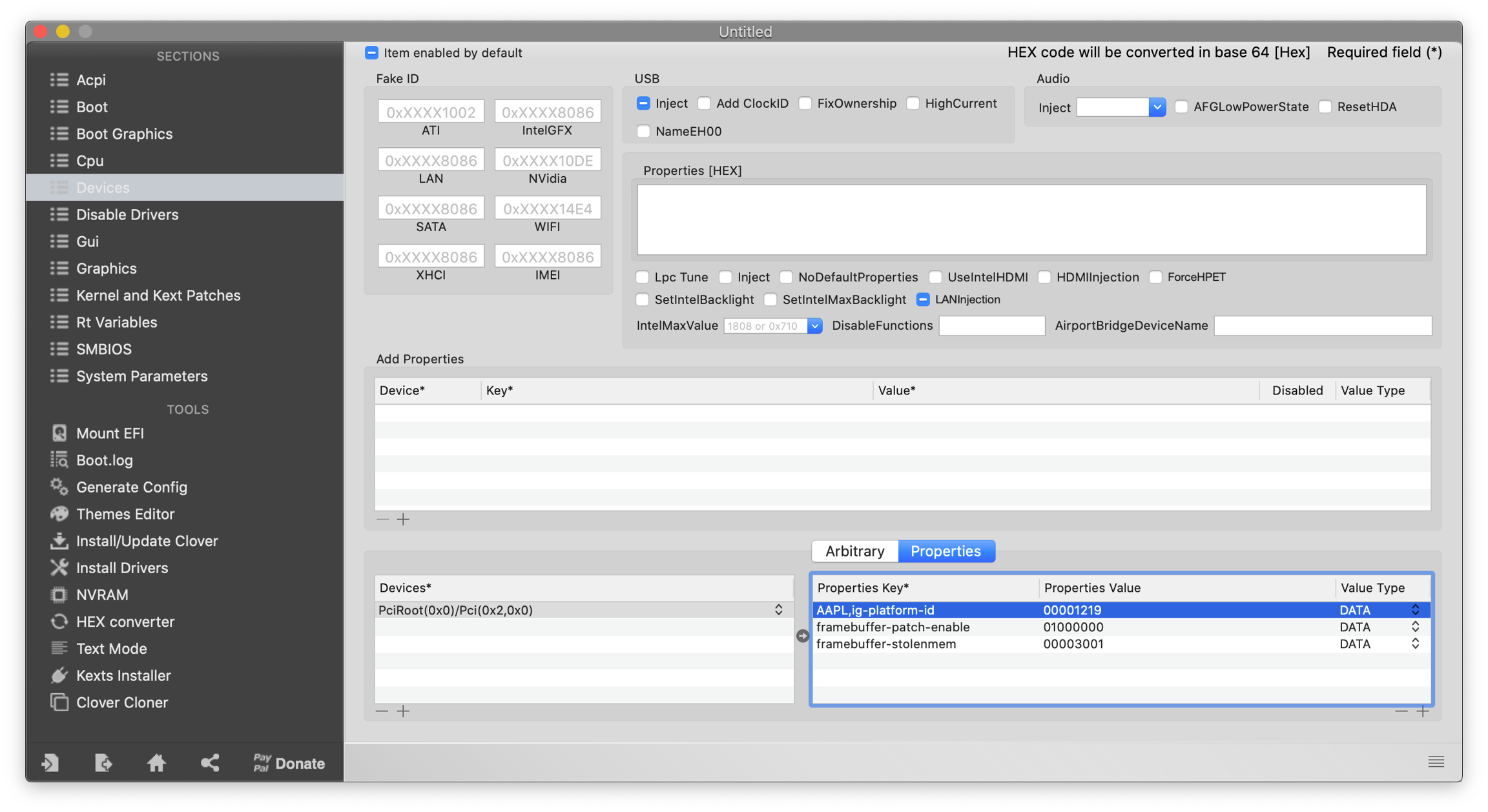 PciRoot(0x0)/Pci(0x2,0x0)Now we need to to find a framebuffer approrpiate for our iGPU, you can find a list of these values in the GPU Buyers Guide or in the Intel Framebuffer Patching Guide. For the majority you can find your iGPU here: